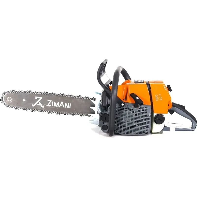 Бензопила ZimAni MS 660 18" это единственная в России пила для профессионального использования с объемом двигателя более 90 куб.см., возможностью установки цельносварных шин со сменными наконечниками до 120 см длиной. Мощность бензопилы ZimAni достигает 7-ми л.с. при максимальных оборотах двигателя 13500 об/мин. Мощная бензопила ZimAni MS 660 для профессионального использования, выдерживающая самые высокие нагрузки. Бензопила ZimAni MS 660 предназначена для использования в густом лесу и для распиловки твердой древесины. Бензопила MS 660 отлично подходит для тяжелой работы по валке деревьев диаметром от 50 см и для заготовки крупноразмерной древесины.