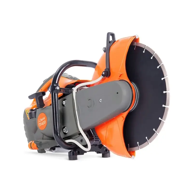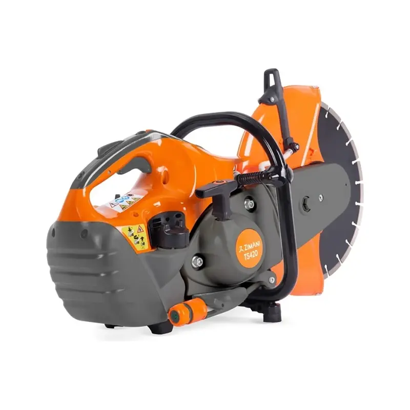 Бензорез ZimAni TS-420 — абразивно-отрезной инструмент, предназначенный для резки стали, бетона, камня, асфальта и керамики. Удобно расположенная крышка топливного бака дает возможность быстро дозаправить инструмент, что позволяет избежать простоев в работе. Кнопки управления удобно расположены на рукоятке. Благодаря специальной системе снижения вибрации достигается высокий уровень резки.