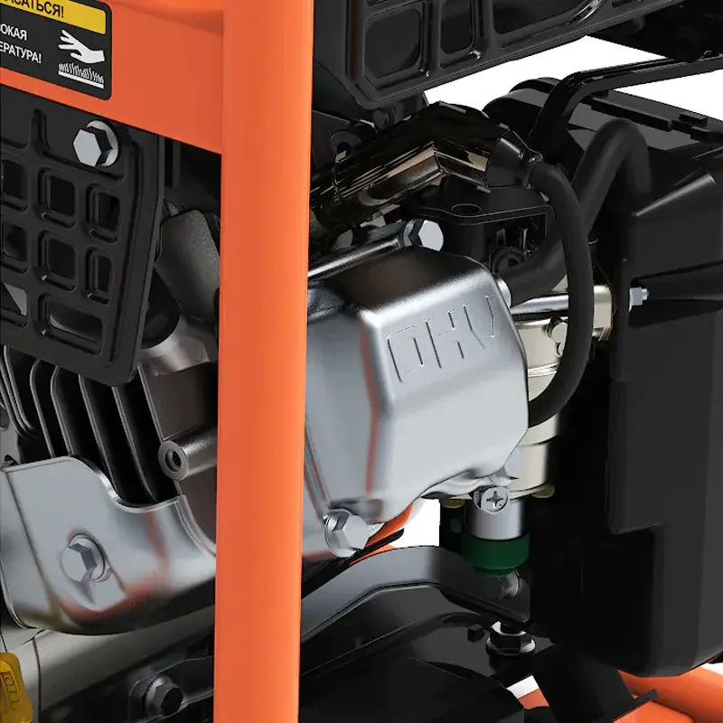 Бензиновый генератор оснащен фирменным 4-хтактным двигателем Zongshen GB225 мощностью 3,8 кВт. Для запуска используется ручной стартер. Прочная металлическая рама упрощает погрузку и перевозку устройства. Открытая сборка обеспечивает быстрый доступ для технического обслуживания узлов агрегата. Розетки защищены от попадания влаги и пыли специальными крышками.