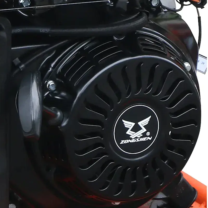 Четырехтактный двигатель заводится одним поворотом ключа зажигания при помощи электрического стартера. На случай разрядки аккумуляторной батареи предусмотрен ручной стартер. Одной заправки бензобака достаточно для автономной работы бензинового генератора Zongshen на протяжении 8 часов. Индикатор предупреждает о низком уровне топлива.