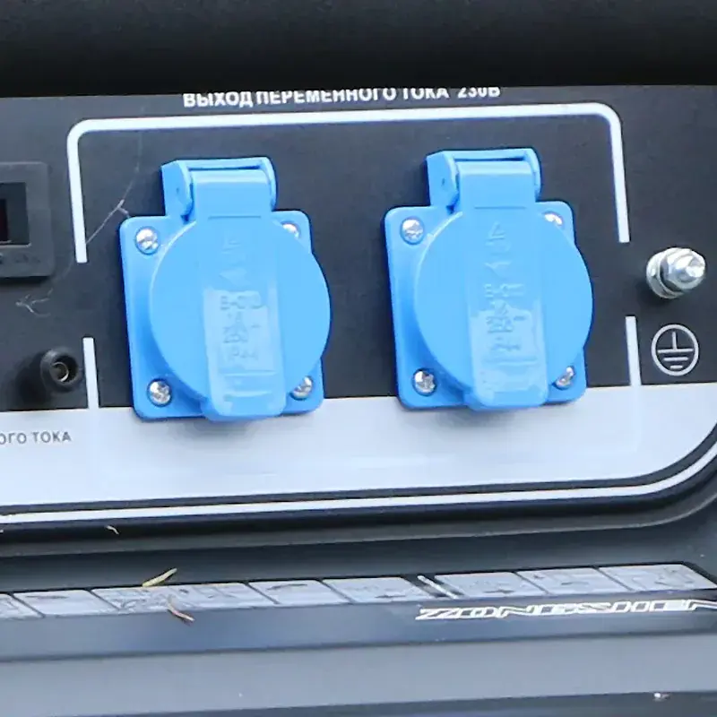 Контрольная панель оснащена двумя розетками переменного тока, к которым можно подключать осветительные приборы, электроинструменты и бытовую технику. Расположенный рядом предохранитель автоматически отключает генератор в случае короткого замыкания или перегрузки. На цифровом табло отображается информация, необходимая, чтобы контролировать работу генератора Zongshen KB 5000 Е.