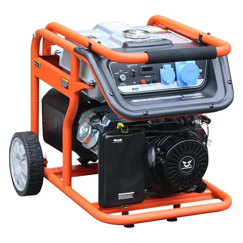Бензиновый генератор оснащен производительным и износостойким двигателем Zongshen GB 420 E мощностью 12,5 л.с. Для запуска используется практичный ручной стартер. Модель оборудована двумя розетками 220 В на 16А и 32А, благодаря чему подходит для питания обычной бытовой и силовой строительной техники. Для подключения неэнергоемких приборов есть выход 12 В. Синхронный альтернатор обеспечивает стабильное напряжение, что важно для работы сложных и чувствительных электроприборов.