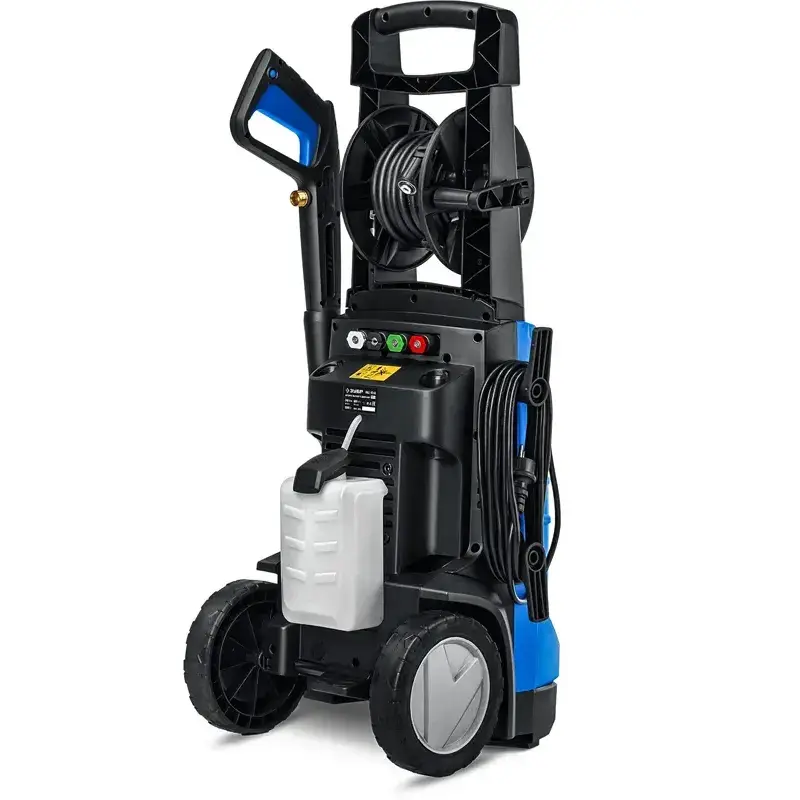 Благодаря барабану шланг можно разматывать на необходимую длину, а по завершении мойки аккуратно сматывать во избежание перегибов и повреждений. Специальные приспособления для намотки кабеля, фиксации пистолета, струйной трубки и прочих аксессуаров обеспечивают порядок на месте проведения работ и компактное хранение мойки ЗУБР АВД-П240.