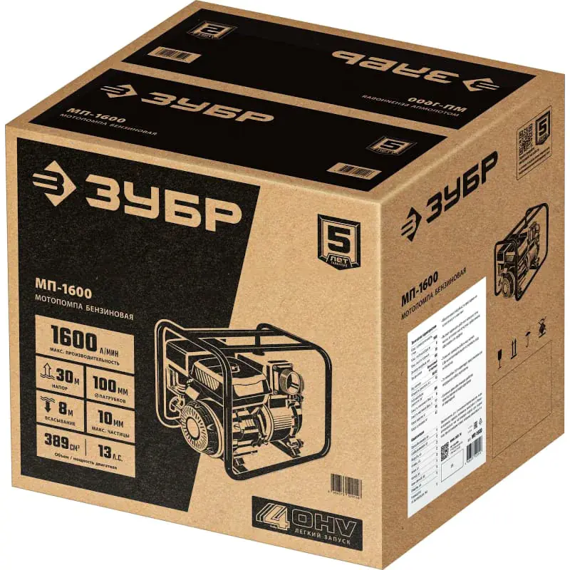 Бензиновая мотопомпа ЗУБР МП-1600 из серии МАСТЕР, оборудованная двигателем мощностью 13 л.с. и высокопроизводительным насосом, обеспечивает перекачивание чистой и слабозагрязненной воды со скоростью 1600 л/мин. Устройство находит широкое применение при организации полива, наполнении емкостей, ликвидации последствий паводков, тушении пожаров и выполнении прочих работ, связанных с откачкой и перекачкой жидкости в больших объемах. Максимальная глубина всасывания равна 8 м, высота напора — 30 м.