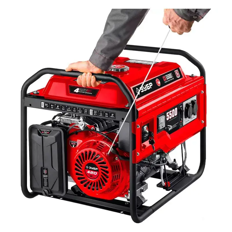 Бензиновый электрогенератор ЗУБР СБ-5500Е, предназначен для обеспечения электрической энергией потребителей в отсутствии электрической сети, а также для использования в качестве резервного или аварийного источника электрической энергии. Мощный генератор, который пригодится не только в загородном доме, но и в мастерской, и на строительной площадке, и вообще везде, где нет стационарного электричества, но нужно иметь работающую технику и инструмент.