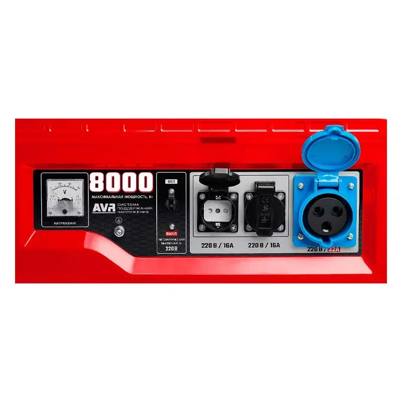 - Розетка 220В увеличенной мощности для подключения наиболее мощных потребителей расширяет возможности использования генератор.