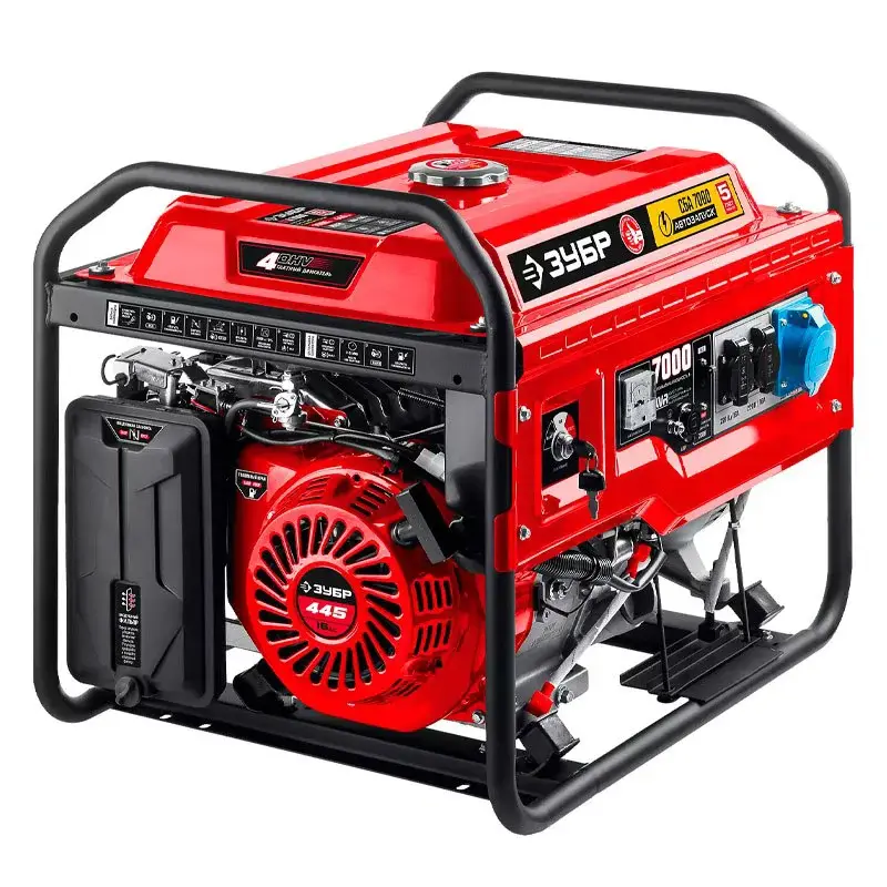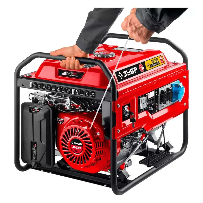 Бензиновый электрогенератор ЗУБР СБА-7000, предназначен для обеспечения электрической энергией потребителей в отсутствии электрической сети, а также для использования в качестве резервного или аварийного источника электрической энергии. Мощный генератор, который пригодится не только в загородном доме, но и в мастерской, и на строительной площадке, и вообще везде, где нет стационарного электричества, но нужно иметь работающий приборы и инструмент.
