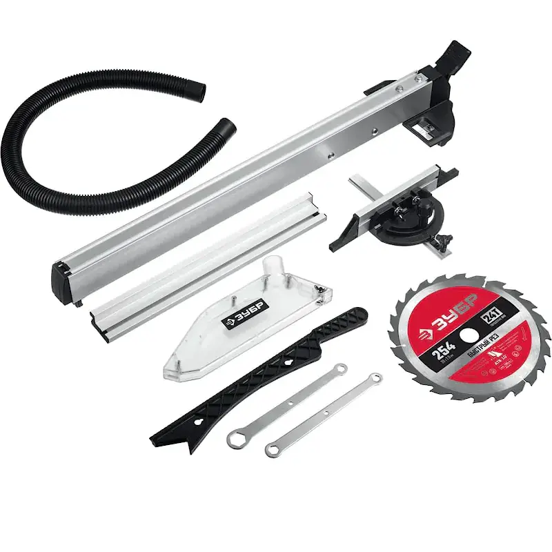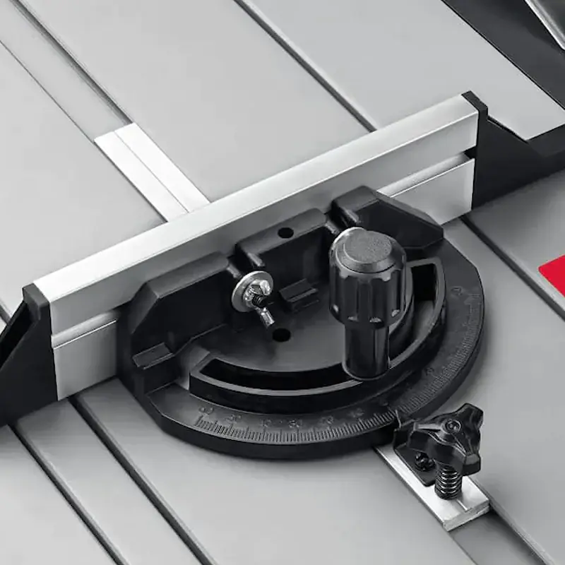 Гибкая и простая настройка позволяет подготовить станок под конкретные задачи. Продольный упор оснащен надежным фиксатором, имеет смотровое окошко для большего удобства. На продольную линейку нанесена выверенная шкала. Угловой упор имеет широкий диапазон регулировки. Дополнительные принадлежности можно крепить к корпусу распиловочного станка. Это удобно, т.к. все необходимое будет у вас под рукой и не потеряется во время хранения.