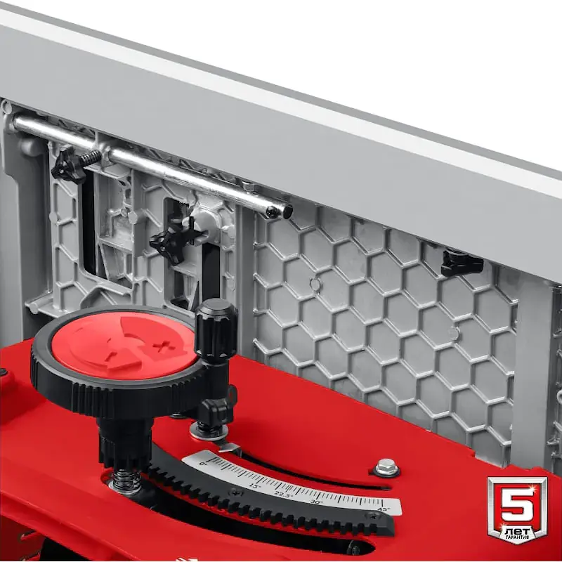 Напольный станок оснащен мощным двигателем, который обеспечивает высокую скорость вращения режущего риска — до 5000 об/мин. Инструмент легко справляется даже с древесиной плотных пород. Рез получается ровным и аккуратным. Положение диска настраивается вручную для выполнения прямого или косого реза. Фиксация и регулировка происходят с помощью планетарного механизма, поэтому вам не придется контактировать с острой режущей частью.
